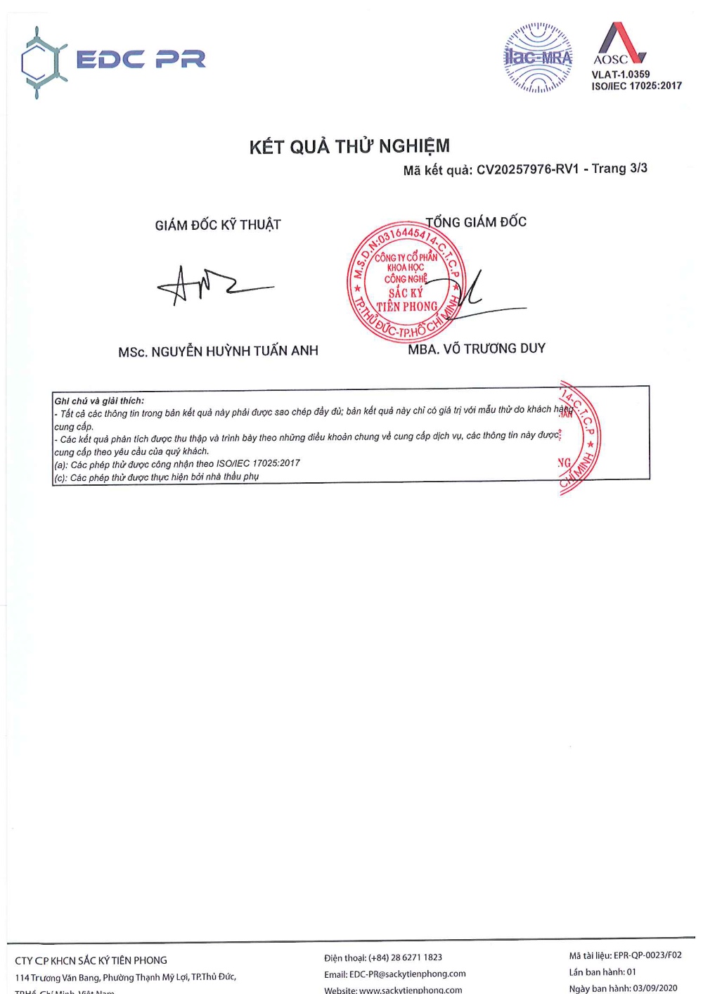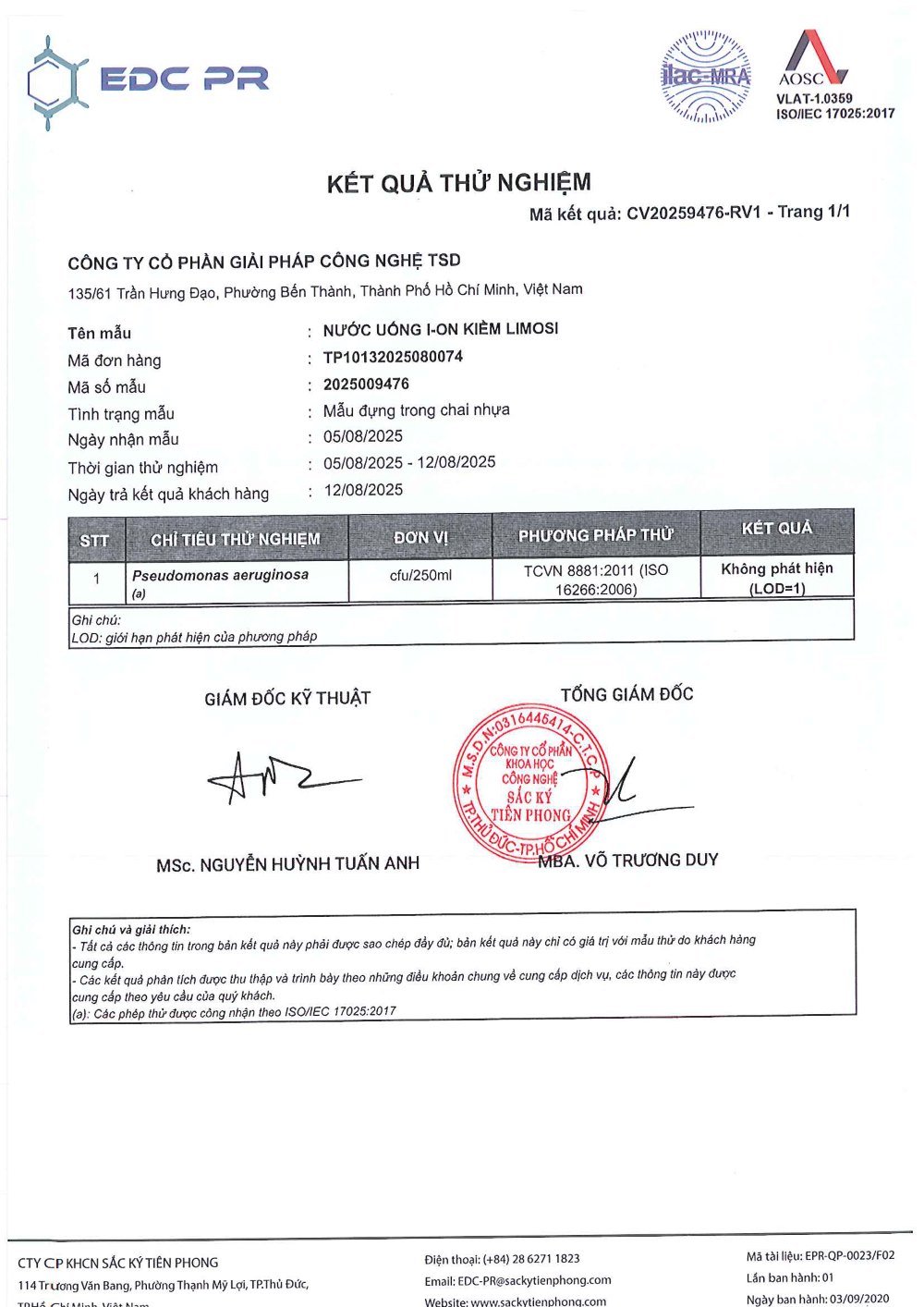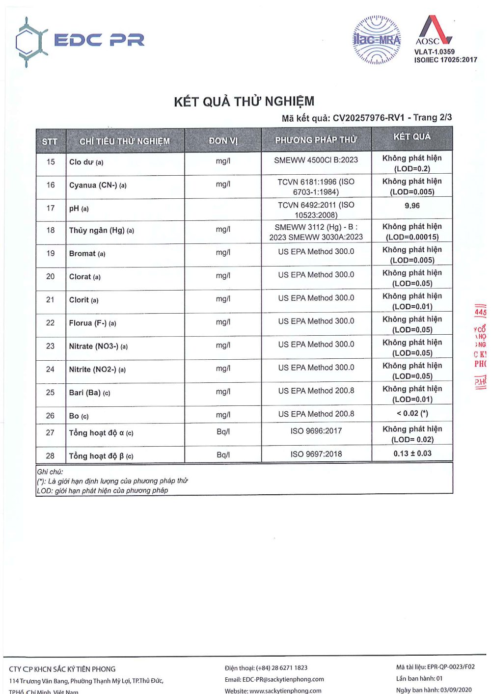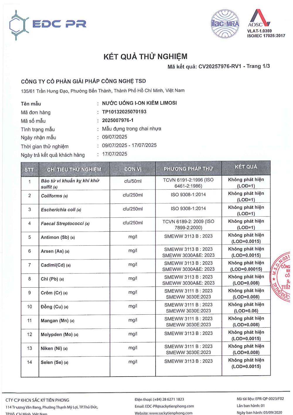 3. Phiếu kết quả thử nghiệm nước qua máy ion kiềm Limosi