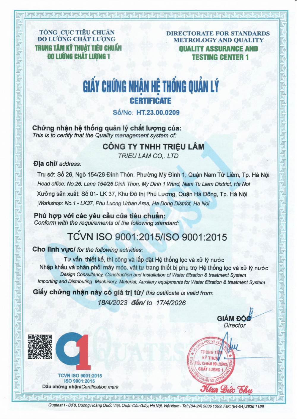 Bộ Giấy Tờ - Chứng Nhận Chất Lượng Máy Ion Kiềm Limosi