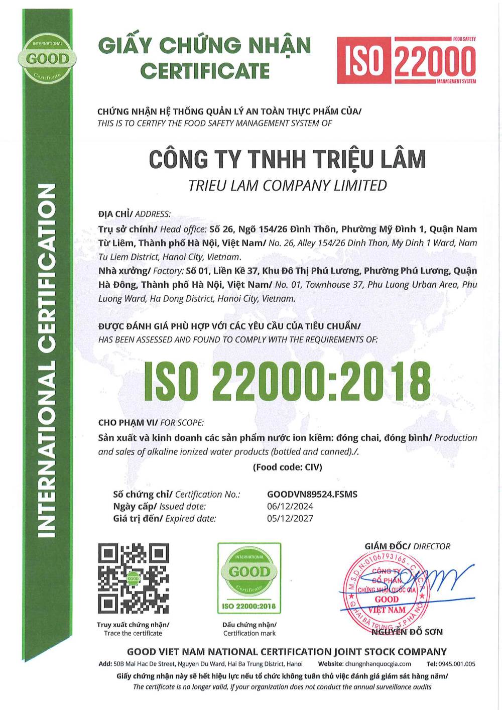 2. Giấy chứng nhận chất lượng Iso 22000-2018